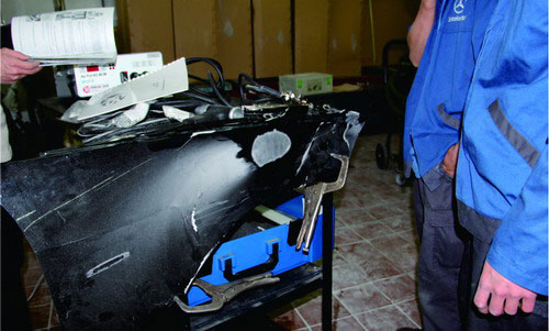 以下為鋁合金覆蓋件損傷修復(fù)的操作步驟(以前翼子板為例):