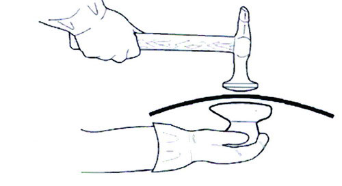 1. 用橡膠錘或木錘配合使用木頂鐵進(jìn)行修復(fù)