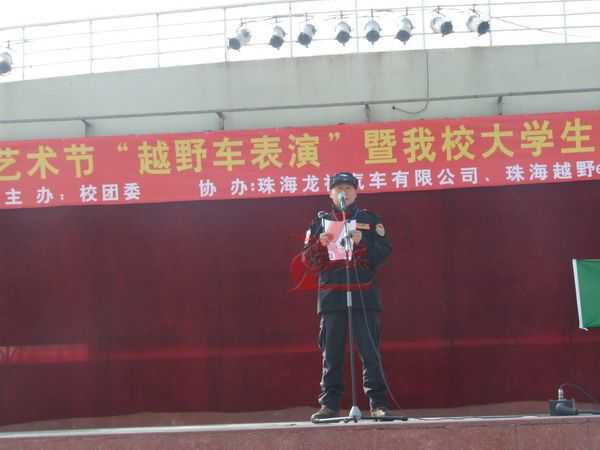 12月5日龍神公司與廣東科學(xué)技術(shù)職業(yè)學(xué)院聯(lián)合“越野e族”舉辦“第十七屆大學(xué)生文化藝術(shù)節(jié) 越野車文化交流表演暨大學(xué)生就業(yè)創(chuàng)業(yè)基地建設(shè)啟動儀式在廣科院校園隆重召開。此次大學(xué)生文化藝術(shù)節(jié)由廣科院校團(tuán)委主辦,龍神公司、越野e族協(xié)辦,出席此次活動的分別來自珠海,江門,中山,順德,澳門的越野e族朋友共八十多輛高級越野車參與;在緊張刺激的汽車轟鳴聲中拉開了序幕。