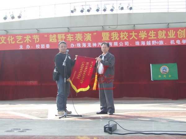 開幕式上龍神彭總發(fā)表慷慨激昂的講話,回顧了龍神公司與廣科院三年的良好合作,并表示將帶動所在行業(yè)和企業(yè)為大學(xué)生指引和提供更多的就業(yè)創(chuàng)業(yè)機(jī)會,共同發(fā)揚(yáng)越野精神、建設(shè)汽車文化,使之成為華南地區(qū)甚至全國范圍的高職學(xué)生精神文明和文化建設(shè)的亮點(diǎn)。隨后宣布了大學(xué)生就業(yè)創(chuàng)業(yè)基地建設(shè)和澳門四驅(qū)會成立啟動儀式,龍神公司和澳門四驅(qū)會分別向廣科院贈送錦旗,多采多藝的大學(xué)生文藝匯演給會場增添了眩麗的色彩,在越野酷車展示中,車主們自信的介紹著自己的愛車,車模們也對車主的酷車贊嘆不已!交流會上,大學(xué)生們爭先恐后與越野車主們交淡著汽車改裝的心得,從中更加深入的了解四驅(qū)越野車的獨(dú)特改裝性能,在校園里到處都充斥著關(guān)于越野車改裝的氛圍。