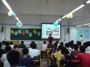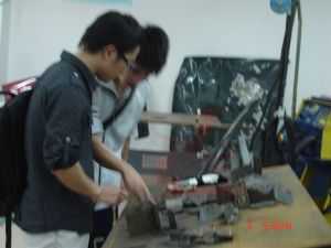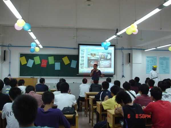 學(xué)長朱福鏢(現(xiàn)龍神實(shí)操技師)與社團(tuán)成員交流實(shí)踐經(jīng)驗(yàn)