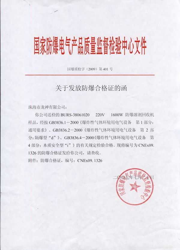 防爆認(rèn)可等級CLASS 1,DIVISION 1,GROUP D 225℃,由ETL認(rèn)證符合UL2208