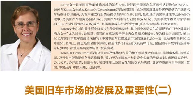 美國(guó)舊車市場(chǎng)的發(fā)展及重要性 2013-07-31 11670 國(guó)聯(lián)邦法律強(qiáng)制性規(guī)定:車輛經(jīng)營(yíng)企業(yè)及代理機(jī)構(gòu),如保險(xiǎn)企業(yè)、國(guó)家機(jī)動(dòng)車所有權(quán)信息代理機(jī)構(gòu)、車輛回收企業(yè)、廢棄/殘值車場(chǎng)等,需要定期向NMVTIS提交報(bào)告。另外,一些個(gè)人性質(zhì)的賣主也須向NMVTIS數(shù)據(jù)庫(kù)提供車輛報(bào)告。NMVTIS有責(zé)任向公眾公布經(jīng)過授權(quán)認(rèn)可的車輛報(bào)告?zhèn)€人賣主名單。另外,車輛歷史報(bào)告記錄的數(shù)據(jù)信息還包括所有權(quán)問題驗(yàn)證信息(國(guó)家規(guī)定)、里程表檢查數(shù)據(jù)、(保險(xiǎn)公司的)車輛事故歷史報(bào)告等。目前,全美 89%的州為美國(guó)機(jī)動(dòng)車管理部門收集信息,并呈現(xiàn)在NMVTIS中。盡管NMVTIS強(qiáng)調(diào),車輛歷史報(bào)告不能代替有資質(zhì)技師對(duì)車體進(jìn)行的全面檢查報(bào)告,但是對(duì)于舊車消費(fèi)者,在最終決定購(gòu)買舊車時(shí)通常都會(huì)看一看車輛歷史報(bào)告。還有一些舊車經(jīng)銷商把提供舊車歷史報(bào)告作為賣車的噱頭。新車經(jīng)銷商在銷售認(rèn)證二手車時(shí),通常會(huì)把車輛歷史報(bào)告作為各種證書、手冊(cè)的一部分提供給買主。如果經(jīng)銷商不提供歷史報(bào)告,消費(fèi)者也可以通過美國(guó)國(guó)家機(jī)動(dòng)車信息管理系統(tǒng)網(wǎng)站(www.nmvtis.org)獲取NMVTIS授權(quán)的銷售商名單,只需少量費(fèi)用就可以購(gòu)買到完整的車輛歷史報(bào)告,或者以更低的價(jià)格買到歷史報(bào)告中有關(guān)車輛主要受損情況的部分內(nèi)容。