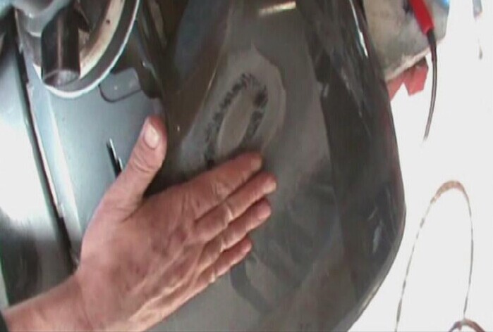步驟12:打磨至塑料件修補(bǔ)面平整光滑,注意要確保無銹加固網(wǎng)沒有裸露,如圖1-12所示。