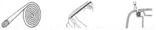 同前面的繩子作用一樣,是一種輔助遮蔽材料,主要用在有密封條的部位的遮蔽。有經(jīng)驗的師傅知道,在遮蔽密封條或嵌條部位時:遮蔽過多,部分邊緣會無法噴到涂料;遮蔽過少,則會連密封條或嵌條上也噴上了涂料。在這種情況下,可以在密封條下面嵌入一種特別的產(chǎn)品,將密封條或嵌條與車身之間撐起一道縫隙,這樣在涂裝時,涂料就能涂勻縫隙邊緣,拆下遮蔽材料后,縫隙邊緣的涂膜就會均勻飽滿。下圖所示即為此類產(chǎn)品的一例: